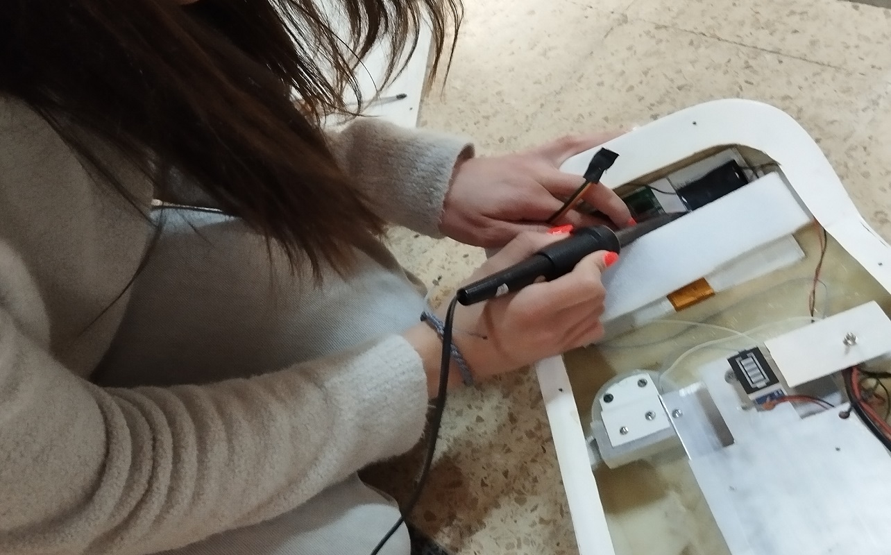 Possui um sistema de rodas que permite mover-se de forma autónoma em espaços definidos.